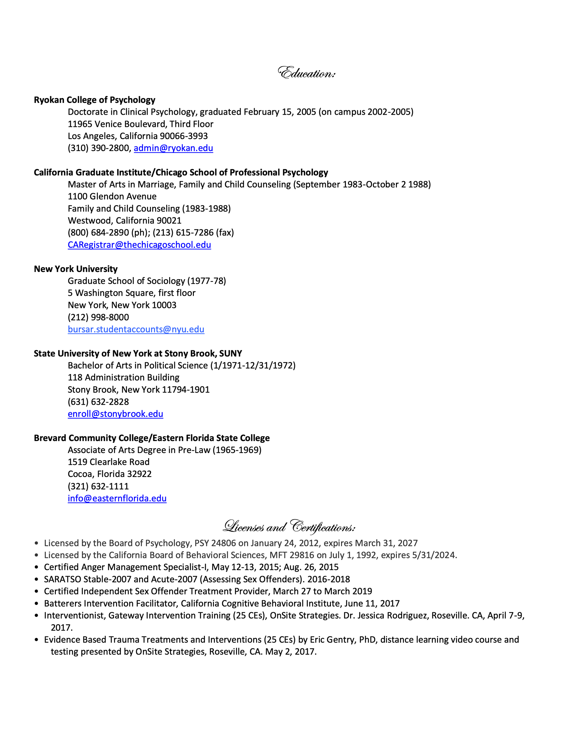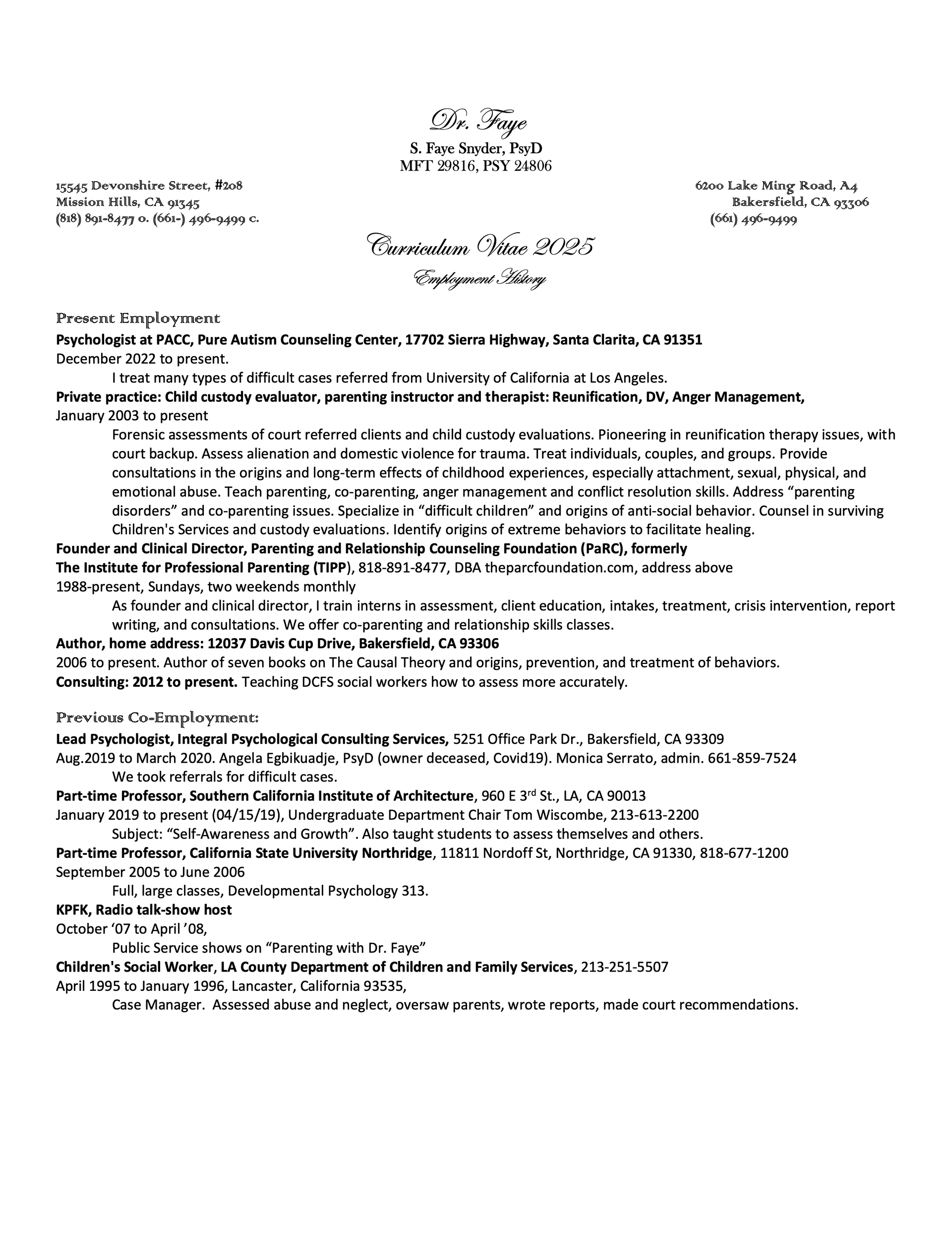 You can click on the button above to download the full copy of Dr. Faye's Curriculum Vitae as a pdf file, or preview the first two pages below.